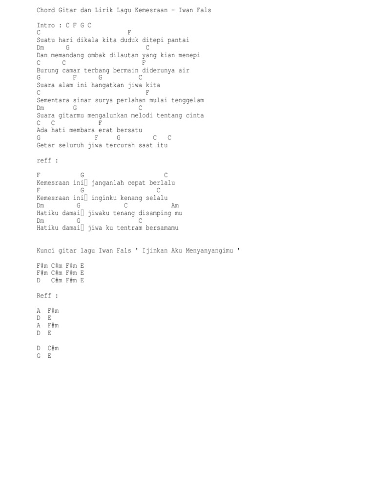 Iwan Fals Kemesraan Kumpulan Kunci Gitar Lirik Lagu